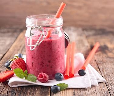 Resumen Fácil: Licúa avena, leche, frutos rojos, mantequilla de almendras y endulzante (opcional). ¡Listo!