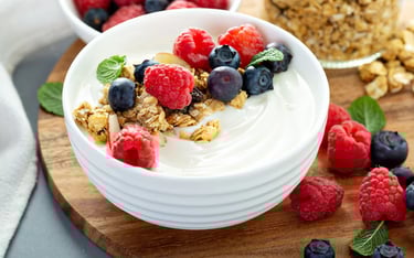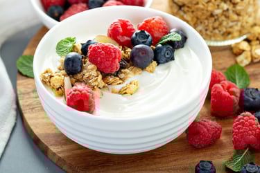 Sirve el yogur: Vierte el yogur griego en un tazón.
